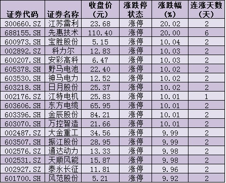 6月17日,電力設(shè)備行業(yè)漲幅居首,達3.81%。其中,江蘇雷利、先惠技術(shù)、寶勝股份、科力爾、安彩高科、野馬電池、神馬電力、日月股份、江特電機、東方電纜、金辰股份、萬控智造、大金重工、振江股份、通達動力、天順風(fēng)能、泰永長征、風(fēng)范股份等18概念股集體漲停。