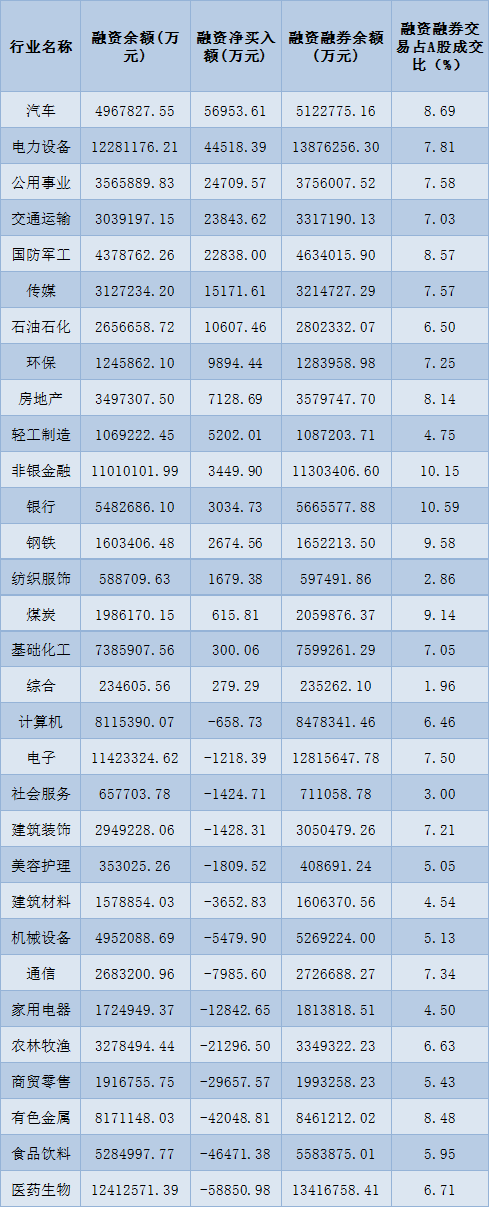 表:1月9日申萬一級行業(yè)兩融交易情況:
