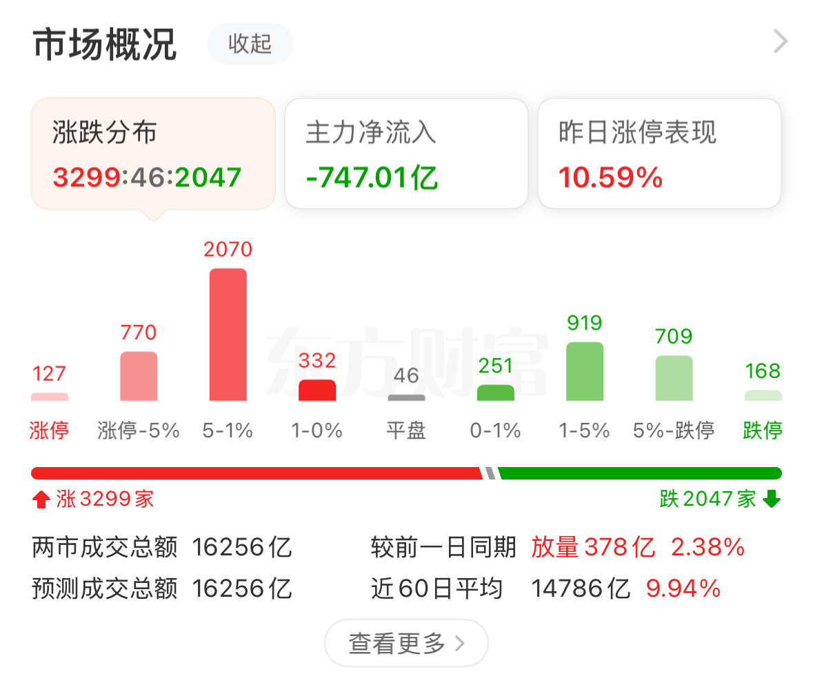 截至下午收盤,三大指數(shù)尾盤強(qiáng)勢(shì)拉升,滬指收漲1.58%,深證成指收漲0.64%,創(chuàng)業(yè)板指收漲1.83%。滬深兩市成交額超過1.6萬億,較昨日小幅放量。