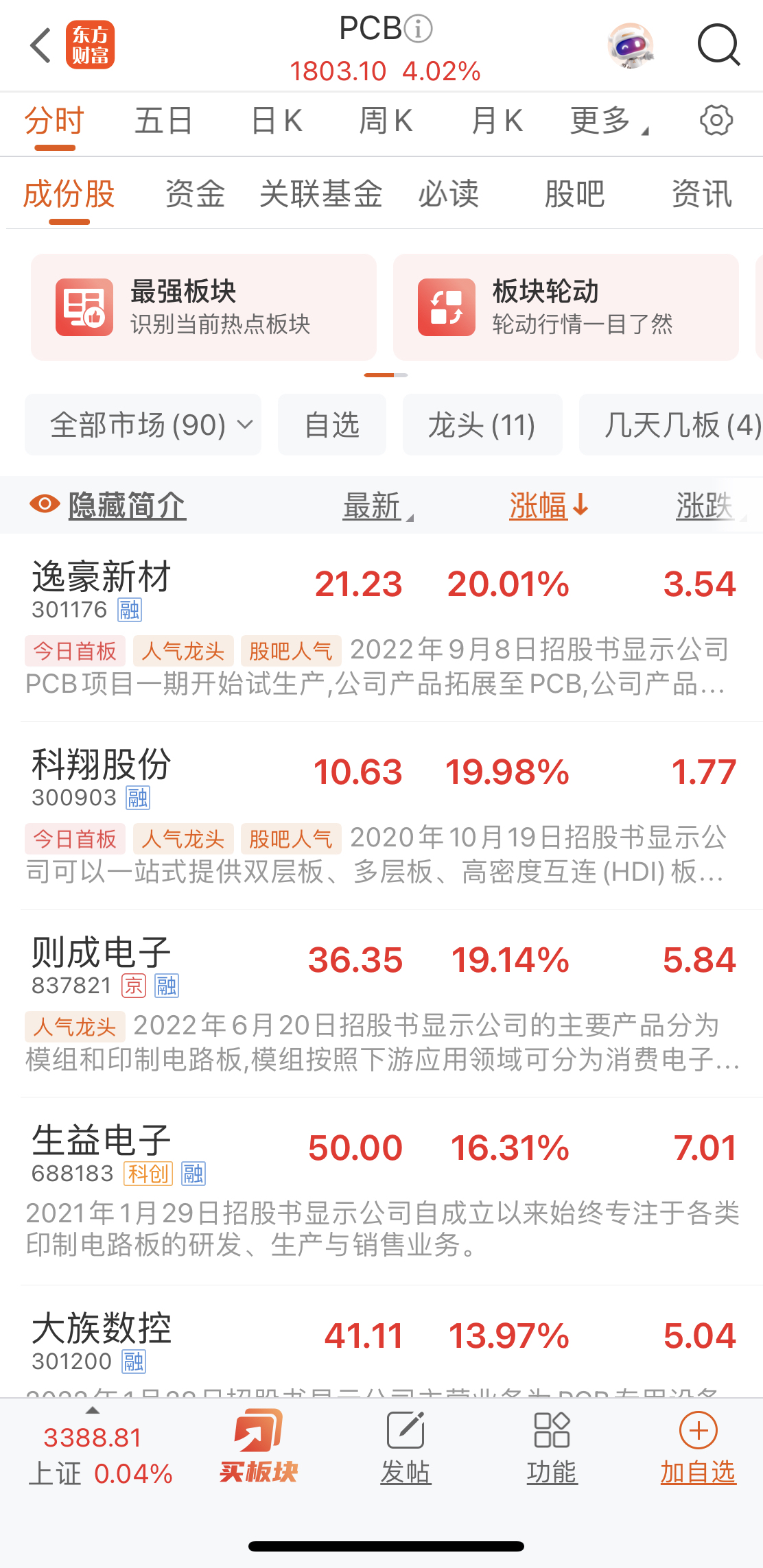 東方財富網(wǎng)數(shù)據(jù)顯示,6月18日午后,PCB(印制電路板)概念漲勢擴大。截至當日收盤,逸豪新材(301176)、中京電子(002579)、滬電股份(002463)、科翔股份(300903)4只個股漲停。則成電子(837821)、生益電子(688183)分別上漲19.14%、16.31%。