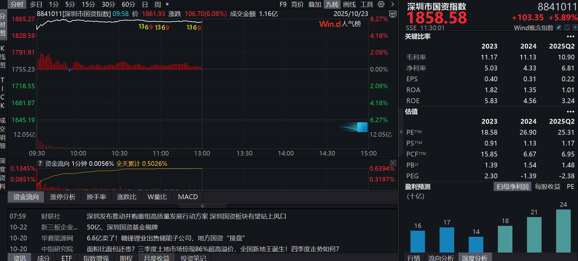 10月23日,深圳市國資指數(shù)開盤跳空高開,截至午間收盤,該指數(shù)上漲5.89%。