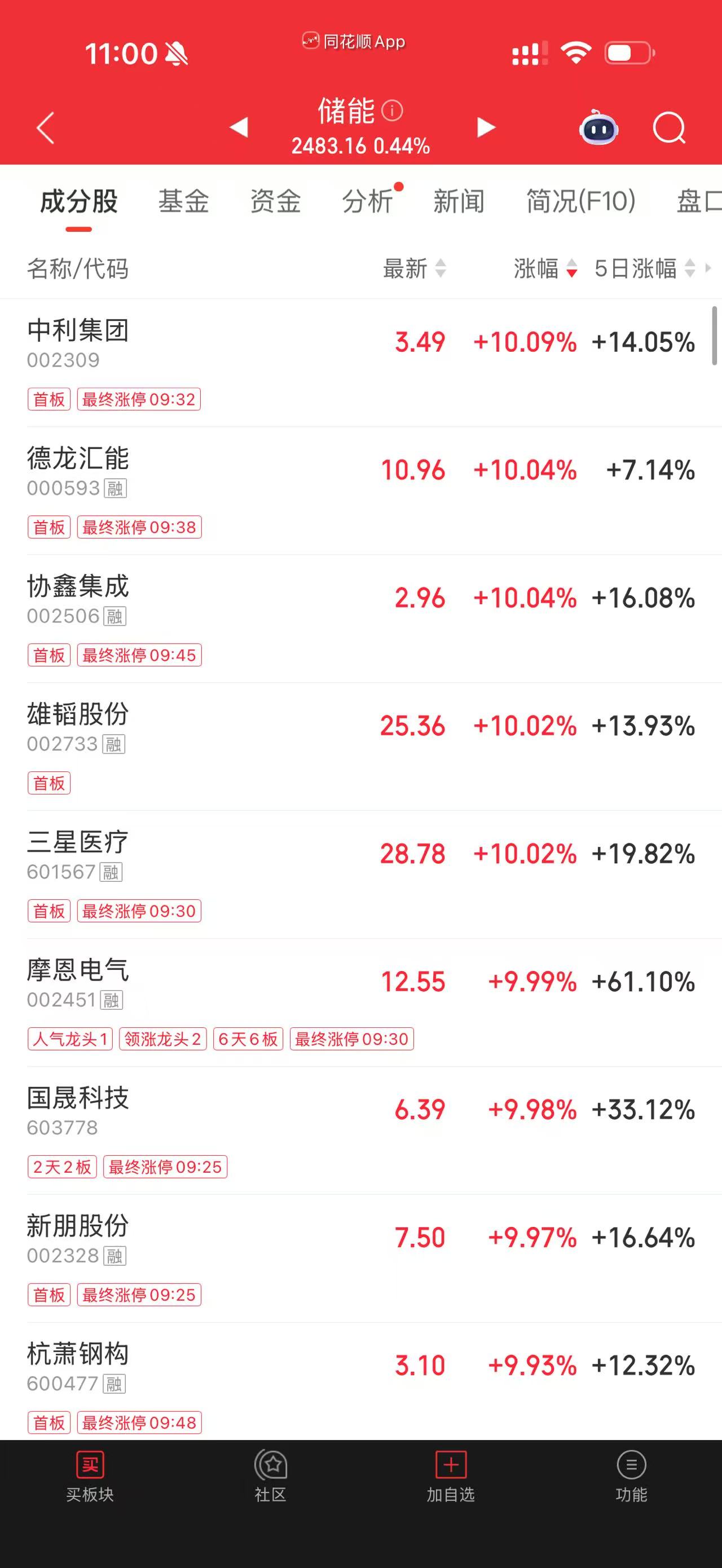 11月11日早盤,新能源板塊強勢領漲,光伏、儲能概念漲幅居前。