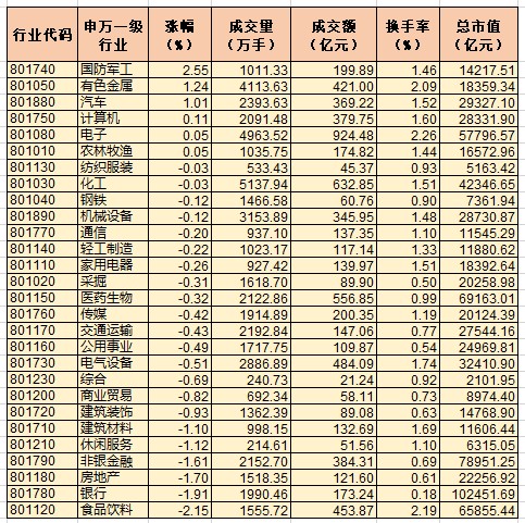 表:11月13日申萬一級行業(yè)市場表現一覽