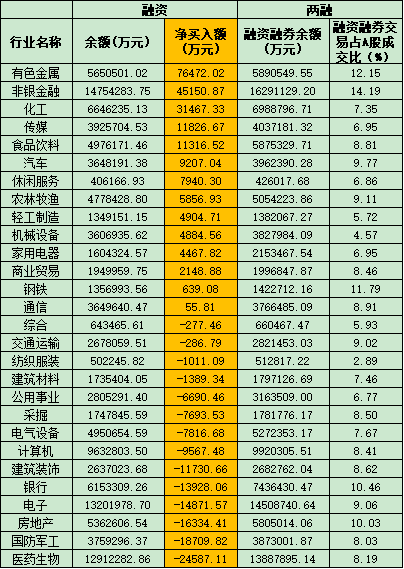 六、截至11月18日申萬級一級行業(yè)兩融交易情況