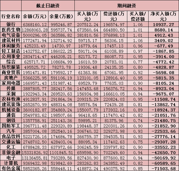 六、截至12月11日申萬(wàn)級(jí)一級(jí)行業(yè)兩融交易情況