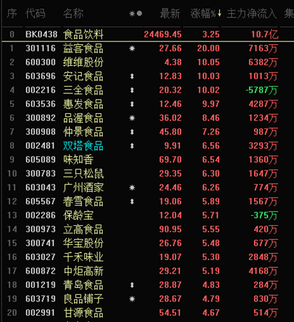 具體來看,截至4月20日11:30,食品飲料概念板塊領(lǐng)漲,漲幅達3.25%。