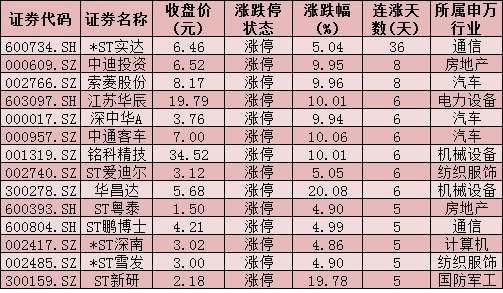 表:連續(xù)5日上漲且今日漲停股情況: