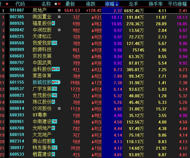 5月19日,房地產(chǎn)板塊漲幅居首,達2.37%。其中,南國置業(yè)、福星股份、中洲控股、天津松江、我愛我家、數(shù)源科技、京投發(fā)展、中國武夷等8只個股集體漲停。