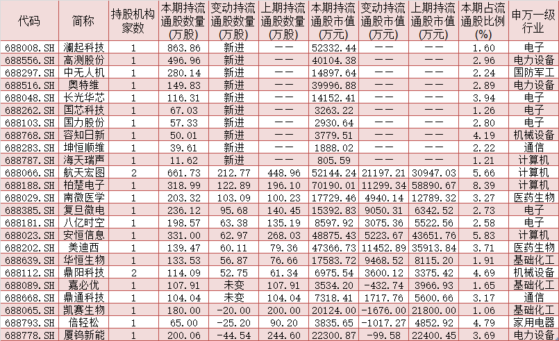 表1:今年二季度獲社?;鸪謧}的科創(chuàng)板公司股票