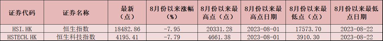 表:8月份以來港股兩大指數(shù)表現(xiàn)一覽